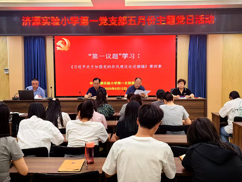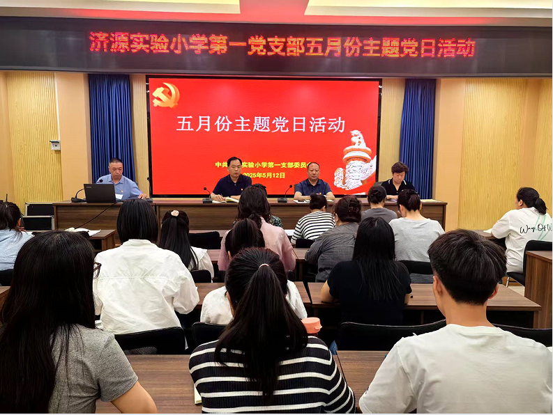 5月12日,中共济源实验小学第一支部委员会50余名党员教师,齐聚学校会议室,开展五月份“党日”活动。